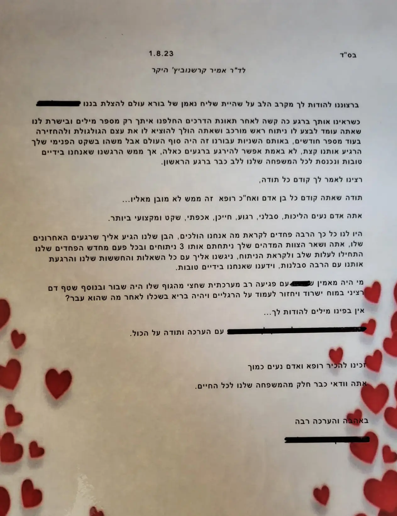 ד"ר אמיר קרשנוביץ' מתמחה באבחון וטיפול במצבים נוירולוגיים הדורשים ניתוחי מוח, עמוד שדרה וחוט השדרה. עם 25 שנות ניסיון בניתוחי מוח, הוא פיתח את הקריירה שלו במקסיקו, ישראל וארצות הברית. הוא ניהל את יחידת הנוירוכירורגיה לילדים במרכז הרפואי גייזינגר בפנסילבניה, ומאז 2017 הוא מוביל את יחידת הנוירוכירורגיה לילדים במרכז הרפואי לילדים שניידר בישראל, ומשלב מצוינות כירורגית מתקדמת עם גישה אנושית וחדשנית.